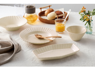 ナチュラルカラーのペールブラウンと、マットな質感のレリーフデザインは料理のジャンルを問わずお使いいただけます。